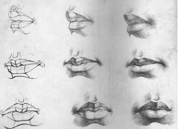 从侧面看,嘴唇的厚度、突起程度以及与脸部的连接十分明显,我们能看到上嘴唇突起超过下嘴唇的程度,以及下嘴唇如何突起于下巴。同样从侧面看,嘴角比嘴巴的中心稍低一些,微笑或大笑时两侧嘴角都被往后拉,使嘴唇紧贴牙齿,上嘴唇的线条变直,下嘴唇总体形状凹陷。