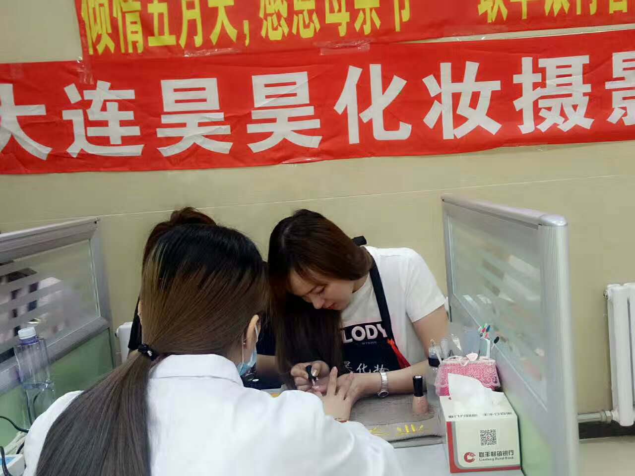 以上就是大连昊昊化妆 美甲班级同学们在联丰银行,儿童摄影,孕婴店实习的场景,她们工作的认真态度赢得了店家的赞赏,出色的完成实习任务,一分耕耘一分收获,同学们怀揣着美甲师的梦想来到昊昊,在昊昊 老师的耐心指导和培养下,通过自己的努力不断的成长,能够独立完成一项实习工作,并且能够出色的完成,相信在昊昊学习中,同学们会越来越******,如果你也想学习美甲,欢迎加入昊昊的行列,选择昊昊,高薪就业!