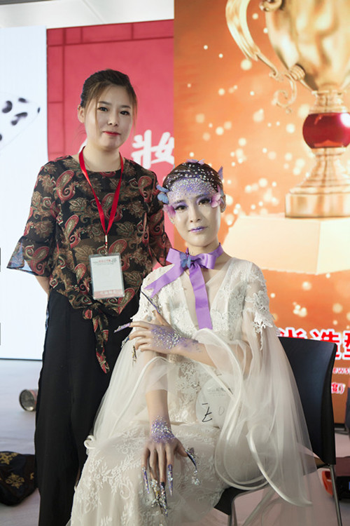 此次大赛共分为三个部分 一是彩妆,二是韩式半******,三是美甲!那么昊昊美妆 的老师们也参加了此次大赛的比拼。