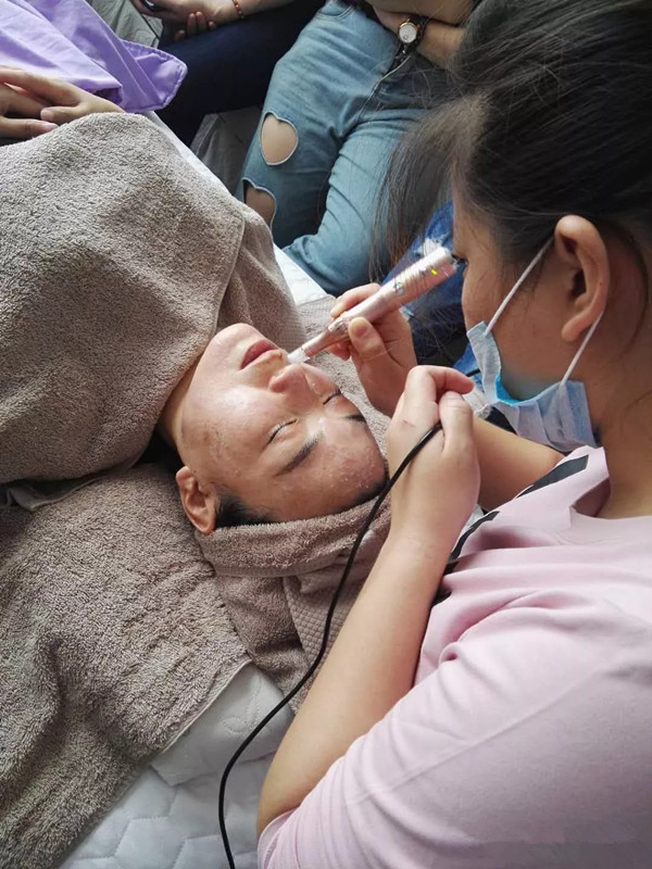 这次课程不仅是学习这些内容,还有骨矽童颜术,无针线雕仪的操作原理,螨虫检测仪的操作,小气泡机器的操作原理。